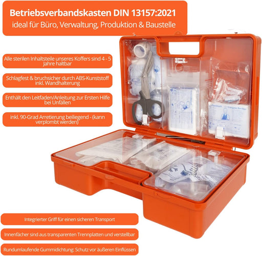 Erste Hilfe Kasten DIN 13157:2021 - verkürztes MHD (Mindesthaltbarkeitsdatum) bis 2027/10 ACHTUNG: wenn KSK=Kältesofort-Kompresse getauscht wird,...